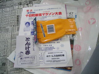 参加賞はいつもの「のびーる手袋」、とん汁券、キナーレ入浴割引券です。