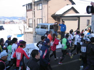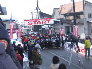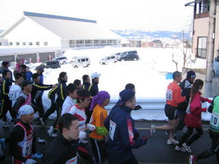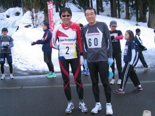 スタート直前、永遠のライバル?長岡ランナーズの久保田さんです。