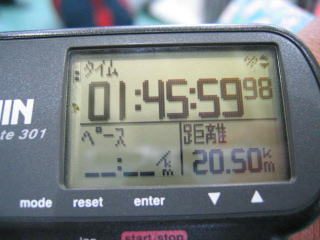 ピンボケで見えませんが公式記録は1時間46分00秒でした、全く鍛錬が足りません。