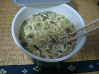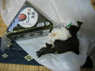 朝は午前5時半に起床、持参したカップ麺と老神温泉付近のコンビニで買ったおにぎり2個で朝食です。
