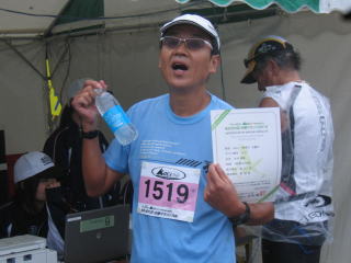 参加賞をもらいに行く途中、角上タカさんに会い、一緒に向かいます。