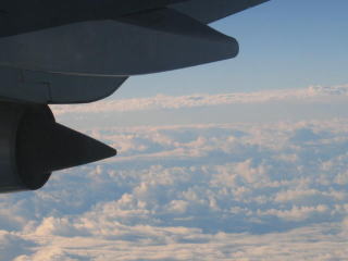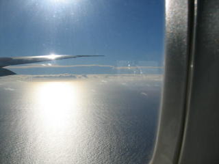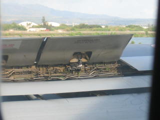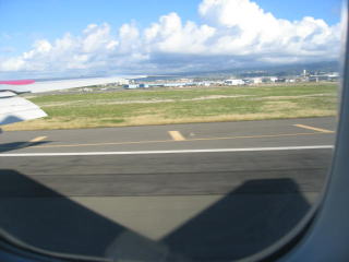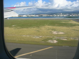 ハワイアン航空、機材はB−717、席はジェットエンジンのすぐ隣です。