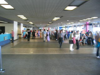 受付でボーディングチケットを受け取り、航空会社受託手荷物検査を済ませ、預けます。