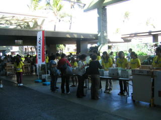 午前3時ころにはアラモアナSCに用意されたマラソンツアーブースには数百名が集まり、司会者の説明を聞いたり、