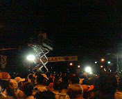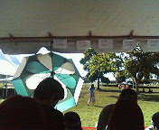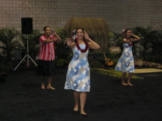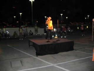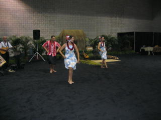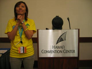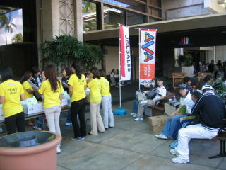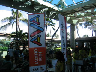 アラモアナショッピングセンター駐車場のAVAブースに到着、司会者がやけに元気です。