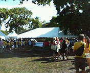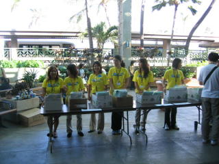 昼食を頂いたら解散、ホテルまでは各自マラソンオフィシャルシャトルバスや、ワイキキトロリーで帰って下さい、とのことです。