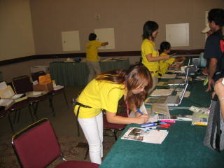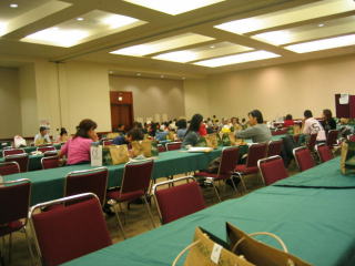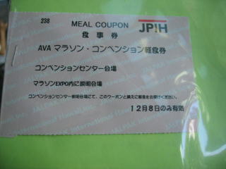 今日の食事券、明日の朝食券やマラソン説明書、トロリーバス無料乗車券をもらいます。
