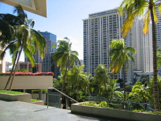 ホテルはワイキキビーチには歩いて2〜3分の好位置にあります。
