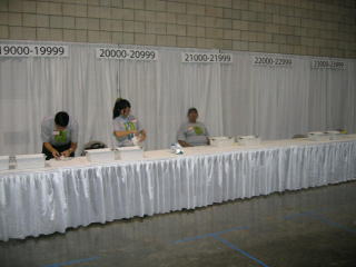 その場で印刷ではなく、係員が束ねてある中から手探りで探しています。