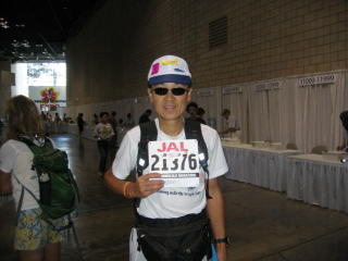 スタート時間の午前5時の20分ほど前に、3時間30分のペースランナーについてスタートラインに向かいました。