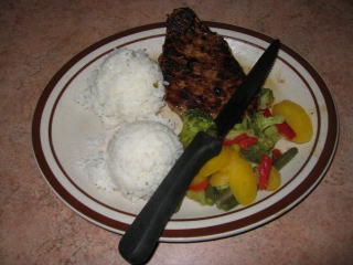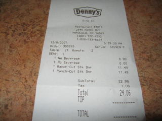 夕方5時ころ、ホテル裏のファミリーレストランのデニーズへ行ってステーキを食べました。