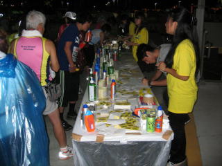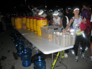 約3キロおきにゲータレード、水、スポンジのある給水所が出てきます。