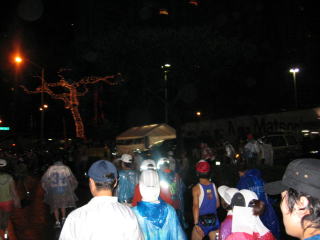 トイレに並んでいるとどしゃ降りのスコール、せっかく頂いたポンチョは歩道にペットボトルなどと一緒においてきたので、