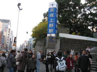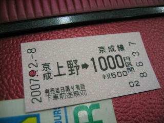 新幹線で上野駅へ向かい、歩いて京成上野駅へ向かいます。