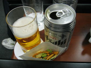 ジュース、コーヒーは無料、ビールは1本のみ無料(おつまみ付き)、感謝です。