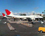 朝3時半起床、4時15分集合、オアフ島ホノルル空港から、ハワイ島ヒロ空港にフライトです。