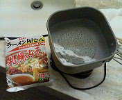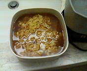 配布された朝食と日本から持っていったインスタントラーメン&ラーメンポットで調理し、温かい朝食を頂きました。