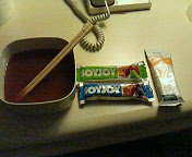 日本から持っていったソイジョイと配布されたパワーバー(日本のとだいぶ内容が違います)です。