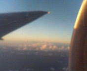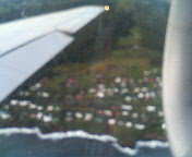 朝焼けの中、1時間弱でハワイ島へ到着します。