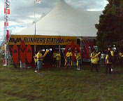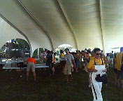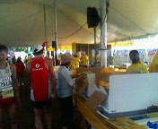 AVAテントはまだガラガラに空いていましたので、着替えを受け取り、カレー、豚汁、フルーツ、飲み物、アイスの昼食を頂きます。