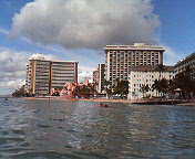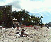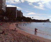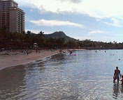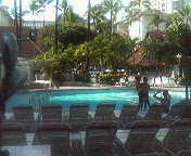 まだ時間がありますので、ワイキキビーチとホテルのプールに出かけます。