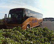 乗ってきたバス「ホクレア号」、トイレ付き、ミントとおしぼりのサービスもあります。