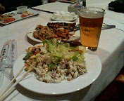 まずはビールとおつまみが出てきて、たまらずおかわりをしました。