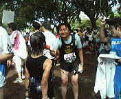 ゴール後は貝殻のレイを掛けてもらい、シャワーで汗と汚れを落とし、ゲータレードのサービスがあります。
