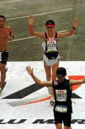 写真撮影しているのも知っていましたので、お決まりの両手を挙げての笑顔でゴールしたつもりです。