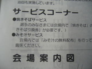 焼きそばサービス、みそ汁サービスをいただき、さらに控室ではお弁当までいただきましたが、お弁当は持ち帰りました。
