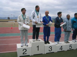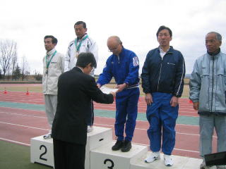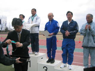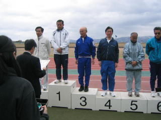 こちらはハーフマラソン男子(56歳以)の表彰式。
