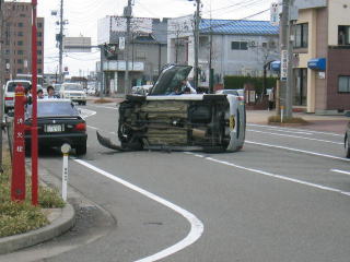 帰りにジャスコの近くを歩いていましたら、「ゴン、バッコ〜ン」っと大きな音がしたので、音のした方に行ってみました。