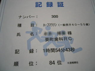 完走証によれば「1時間54分43秒」、当てにならないのか使い方が悪いのか不明です。