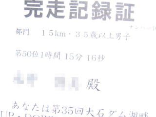 平成20年6月15日、関川村の「大石ダム湖畔UP・DOWN第35回関川マラソン」の15キロに参加しました。