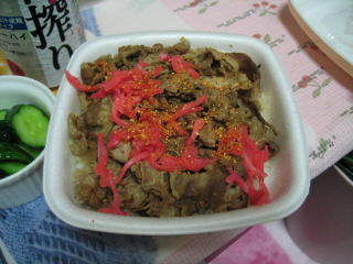 さらに、お酒のおつまみには、事前に長岡で購入しておいた吉野家さんの「牛丼並盛つゆだく」でカーボローディングに励みます。