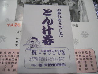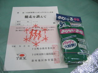 例年通り、ありがたくない白紙完走証、「のびーる手袋」、とん汁券、温泉入浴割引券です。