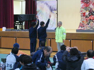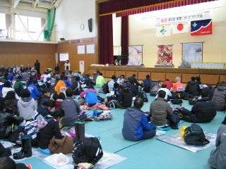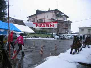 地元中学生の選手宣誓もあります、開会式の頃から雪が降り始め、ゴール後までも雪でした。