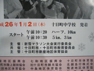 平成26年1月2日 十日町市の「第35回十日町新雪ジョギングマラソン大会」のハーフに参加しました。