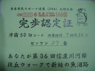 令和5年4月29日、「第36回信濃川河岸段丘ウォーク」の50キロコース(5戦目)に参加しました。