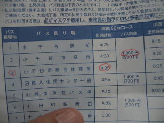 参加料が2.100円、小千谷総体〜津南駅までのバス代が1.800円、合計3.900円です。