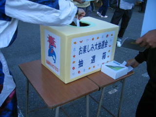 まずは受付を済ませ、抽選券を抽選箱に入れます。