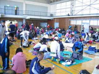 体育館で陣取りますが、もうだいぶ混んでいます。