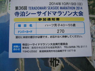 平成26年10月19日 長岡市の「第36回寺泊シーサイドマラソン大会」のハーフに参加しました。