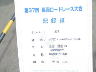 平成20年4月13日 長岡市の「第37回長岡ロードレース大会」のハーフマラソンに参加しました。
