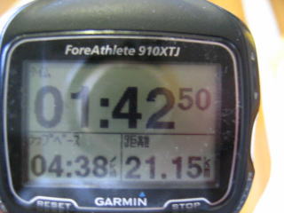急坂はありませんがうねる様なコース、風も強くはなく、1時間42分53秒でゴールです。