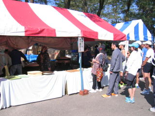 参加賞はスタート前、ゴール後の決められた時間の中で、時間的余裕がある時に受け取ることができます。