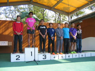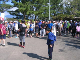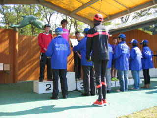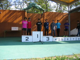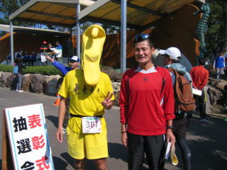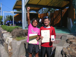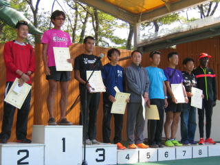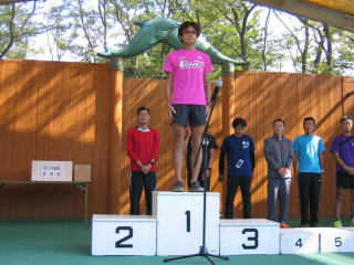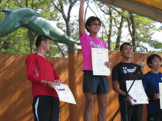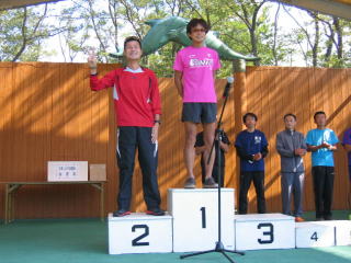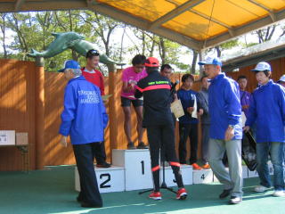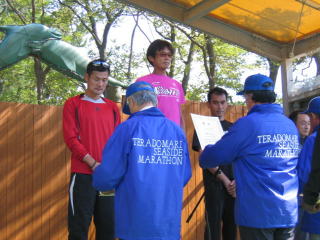 スケジュールより15分ほど遅れて、50歳代男子ハーフの表彰式です。