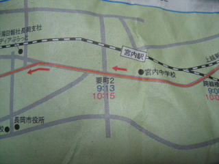 免許センターを過ぎて、旧国道17号線(南中央通り)とぶつかり左折し、長岡駅方面に向かうと向かい風です。