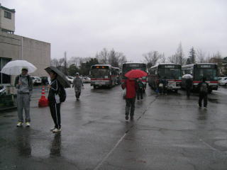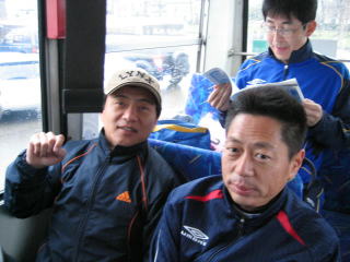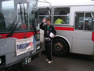 専務さん、今井さん、加藤さんは10キロですのでバスで10キロスタート会場まで移動です。