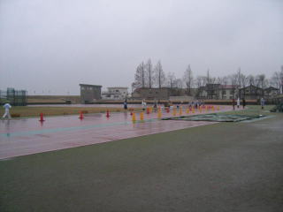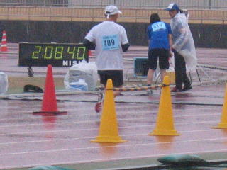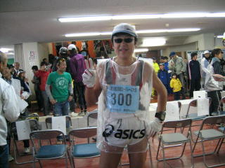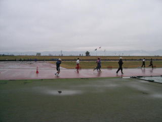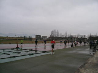 雨の中、ハーフの皆さんウォーミングアップに余念がありません。
